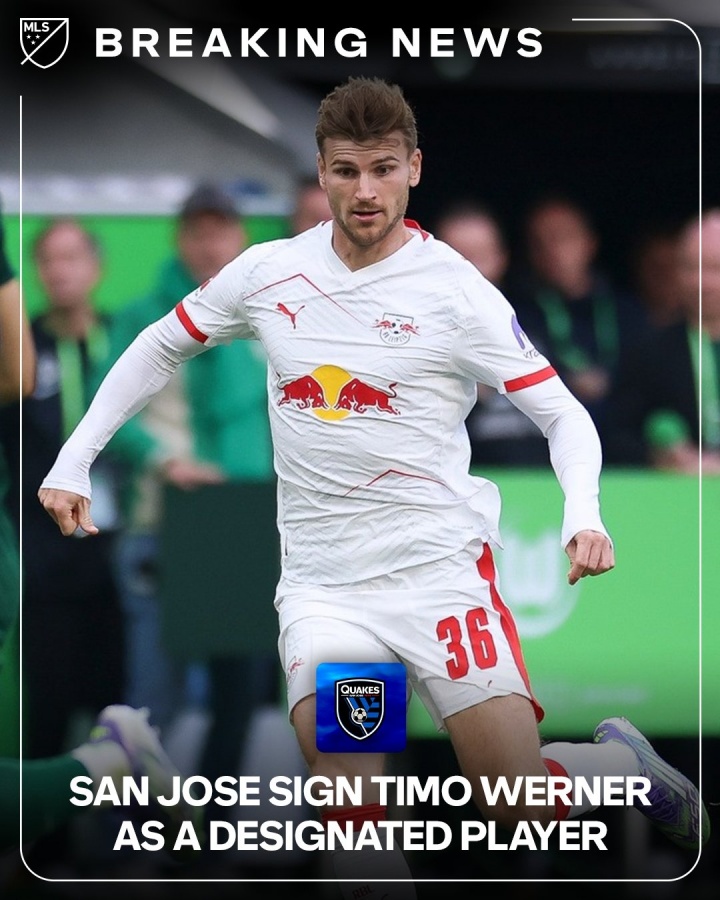 01月30日讯 官方消息,29岁的德国前锋维尔纳从RB莱比锡加盟美国大联盟球队圣何塞地震,双方签约至2028年6月。。