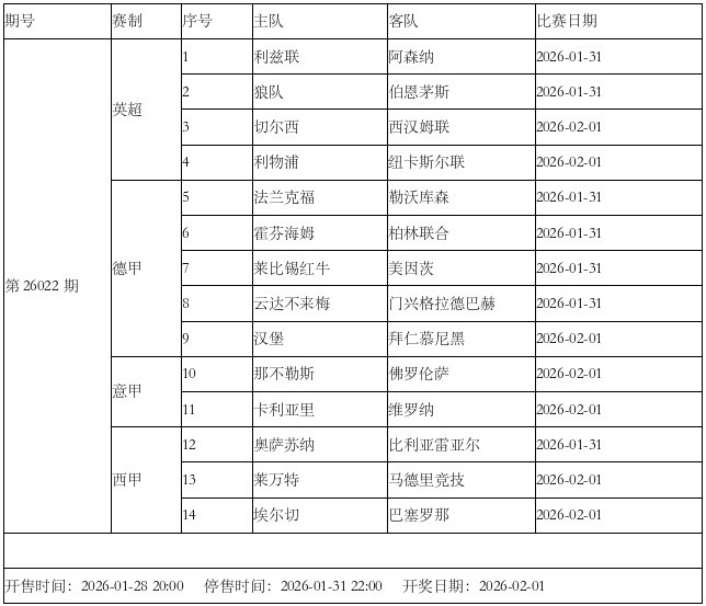 传足胜负彩第26022期看点:枪手期待胜利 德甲南北大王PK