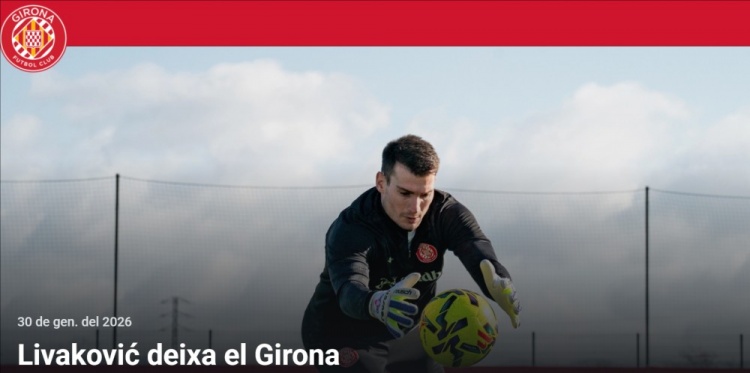 官方写道:“赫罗纳足球俱乐部已与费内巴切达成协议,提前终止利瓦科维奇的租借合同。这位克罗地亚门将于去年夏天从这家土耳其俱乐部加盟蒙蒂利维球场。俱乐部衷心祝愿他在未来的职业生涯中好运。”