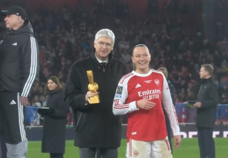FIFA首届女足冠军杯决赛中,阿森纳女足加时3-2战胜科林蒂安,夺得赛事冠军,本场比赛在阿森纳男足主场酋长球场进行。值得一提的是,在赛后颁奖典礼上,现在在国际足联任职的温格重返酋长球场,为阿森纳女足颁奖。