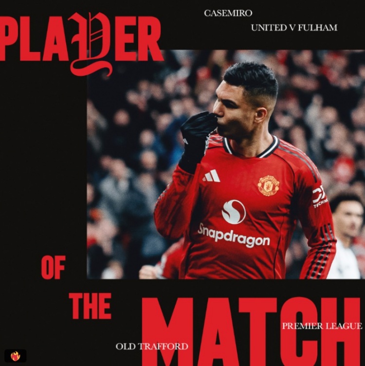 战胜富勒姆,赛后,曼联官方宣布,球队中场卡塞米罗当选本场比赛队内最佳球员。
