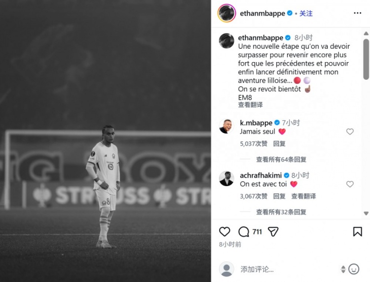 哥哥姆巴佩也回复写道:“你永远不会孤身一人❤️”