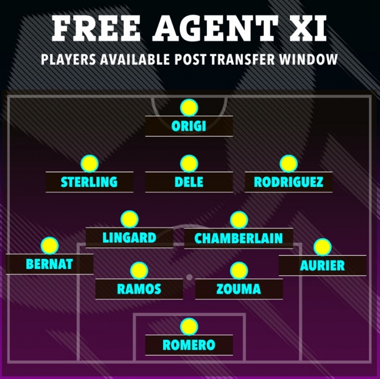 附太阳报列自由球员最佳阵:罗梅罗;贝尔纳特、拉莫斯、祖马、奥利耶;林加德、张伯伦、斯特林、阿里、J罗;奥里吉