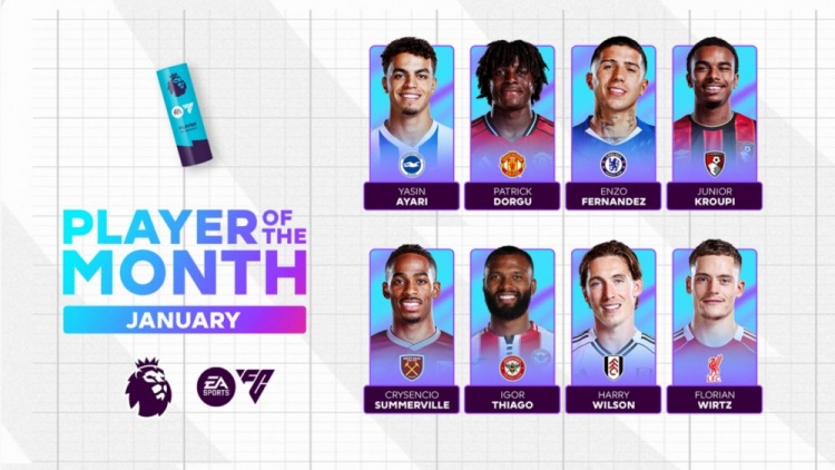 2月5日讯 英超官方公布了1月份最佳球员候选,具体如下: