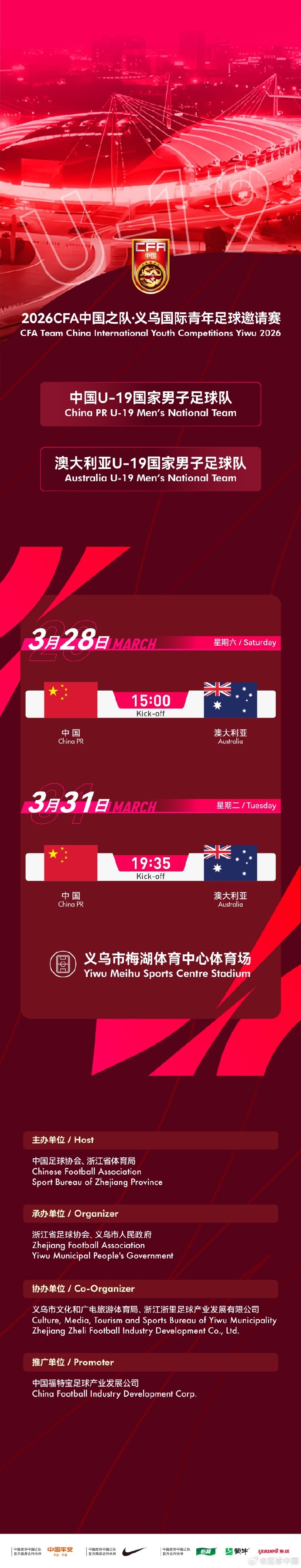 对阵双方:中国U19vs澳大利亚U19