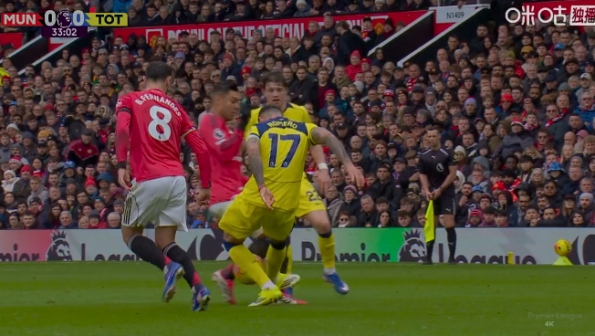 02月07日讯 英超第25轮,焦点战曼联vs热刺,比赛第29分钟,罗梅罗亮鞋底蹬到卡塞米罗,被裁判出示红牌!曼联多打一人!