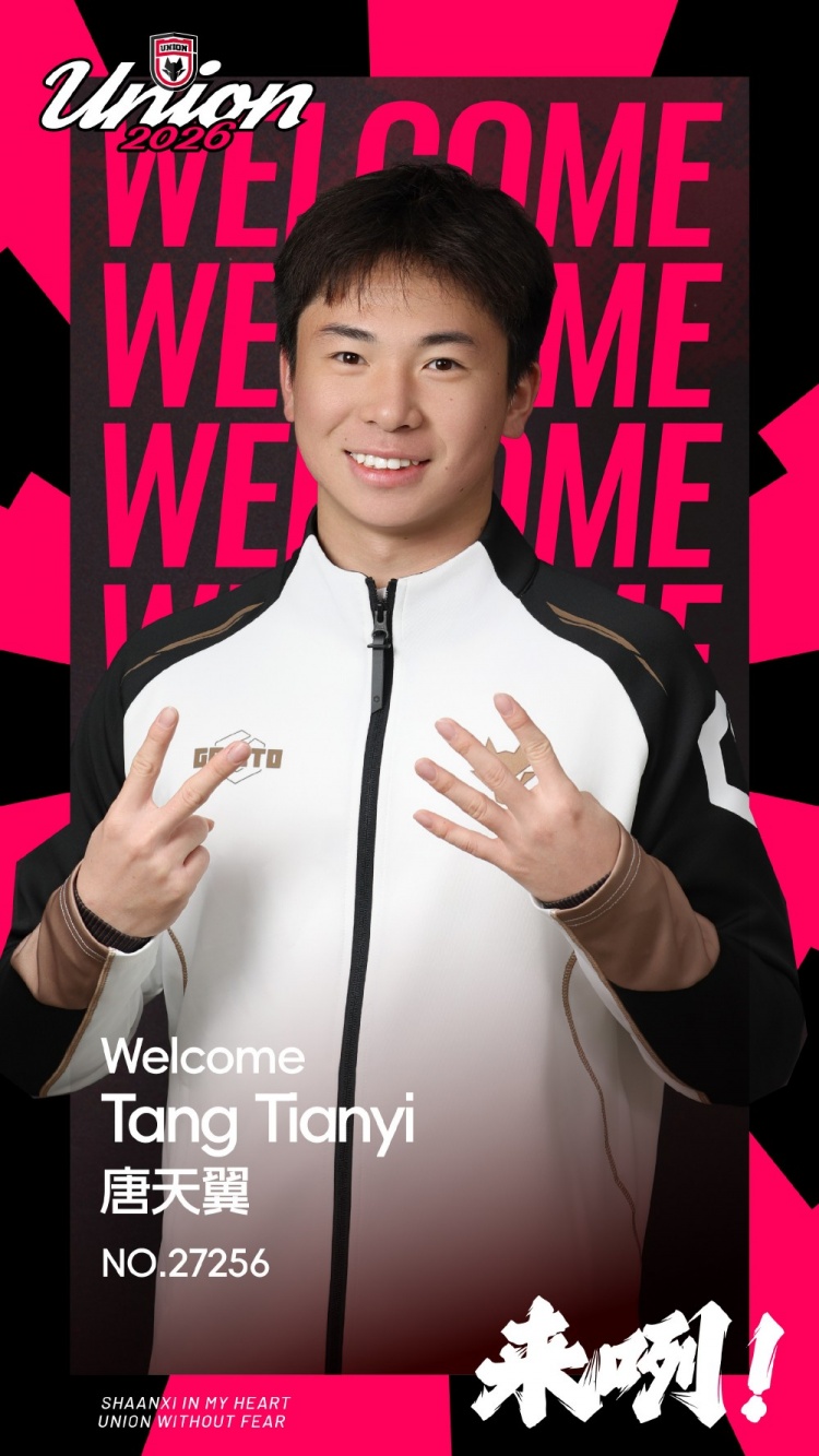 根据俱乐部长期发展规划,经与球员本人友好协商并达成一致,同时经俱乐部技术总监埃德温・彼得森先生完成技术评估与确认:球员唐天翼(会员号:27256),正式加盟陕西联合足球俱乐部!