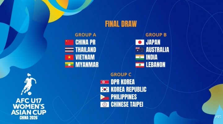 以东道主出战!U17女足亚洲杯分组:中国与泰国、越南、缅甸同组