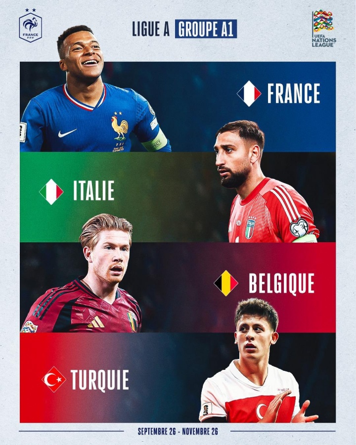 在上一届欧国联中,法国、意大利和比利时三队也曾被分至同个小组,最终法国和意大利同是4胜1平1负积13分,法国因净胜球优势排名小组第一;而比利时1胜1平4负和以色列同分,以净胜球优势排名小组第3。