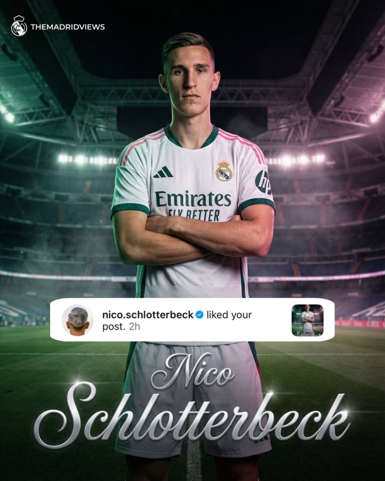 该博主还晒出了施洛特贝克身穿皇马球衣的P图照片,而施洛特贝克本人也点赞了该帖子。该博主表示这也证实了昨天关于他希望下赛季加盟皇家马德里的消息,他认为这个“点赞”就代表同意这笔转会