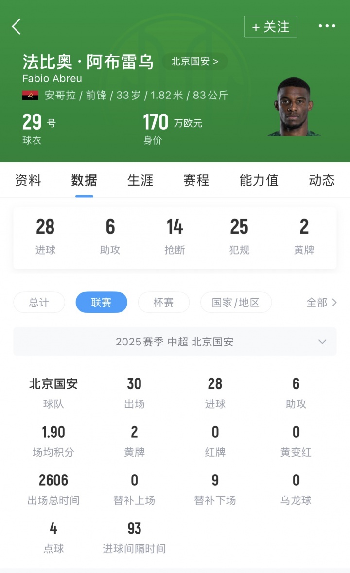 上赛季28球获得中超金靴!国安官方:与33岁前锋法比奥正式续约