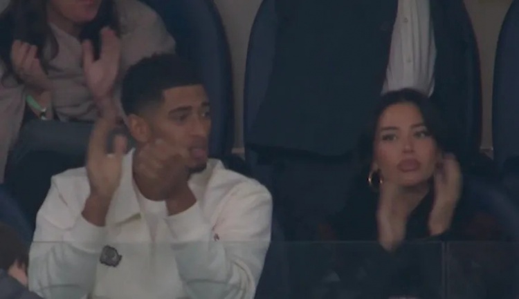 太阳报:贝林厄姆因伤缺席皇马大胜,与女友在看台为球队助威