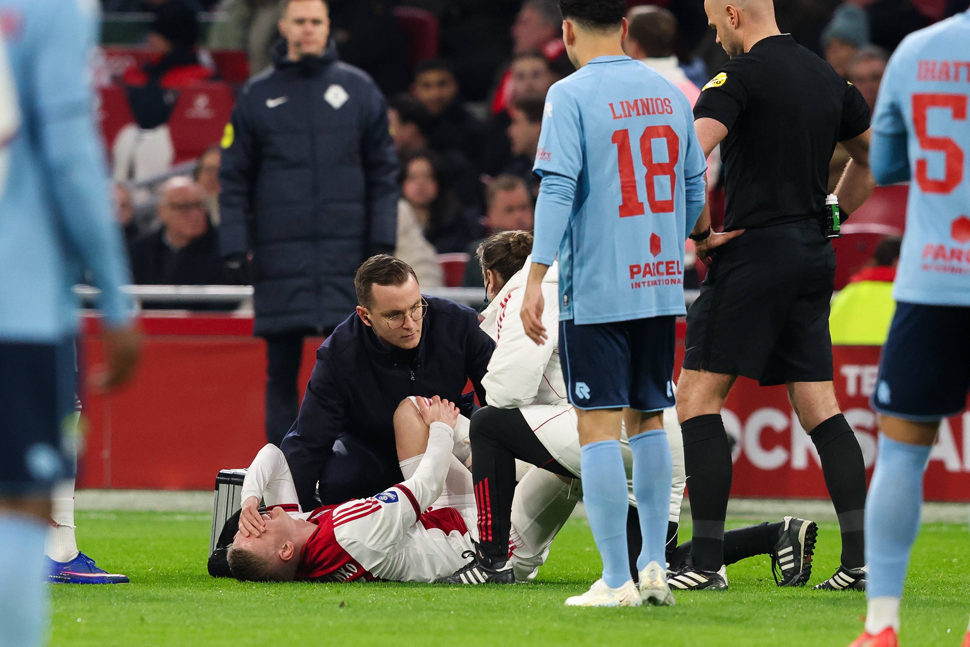 02月15日讯 凌晨荷甲第23轮,阿贾克斯4-1战胜福图纳锡塔德,本场比赛前曼城、阿森纳球员津琴科首发,但第6分钟便因伤离场。