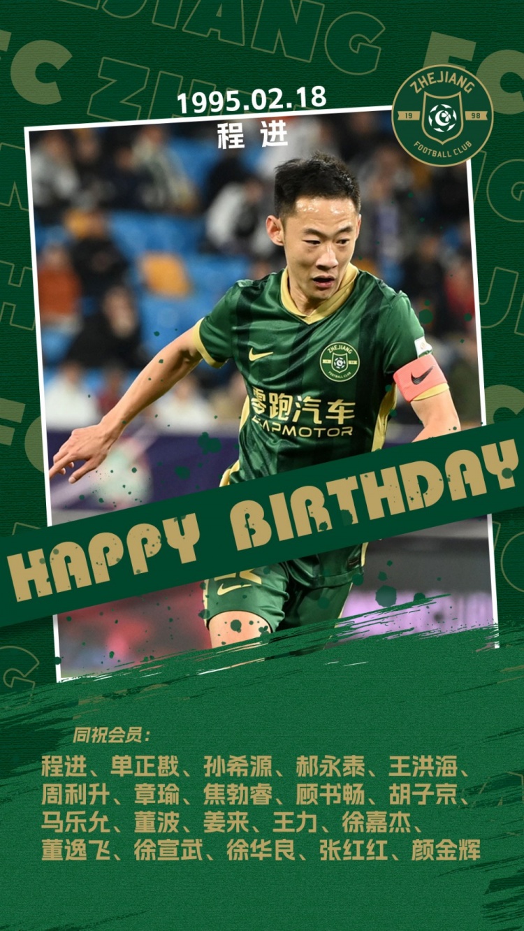 2月18日讯 在31岁生日这一天,程进收到了来自浙江队送上的生日祝福,浙江队同时也为今天生日的俱乐部会员送上了一份美好祝愿。