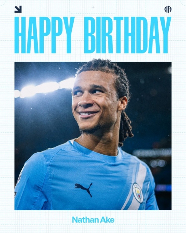 曼城在社媒上晒出阿克海报,并配文:生日快乐,阿克