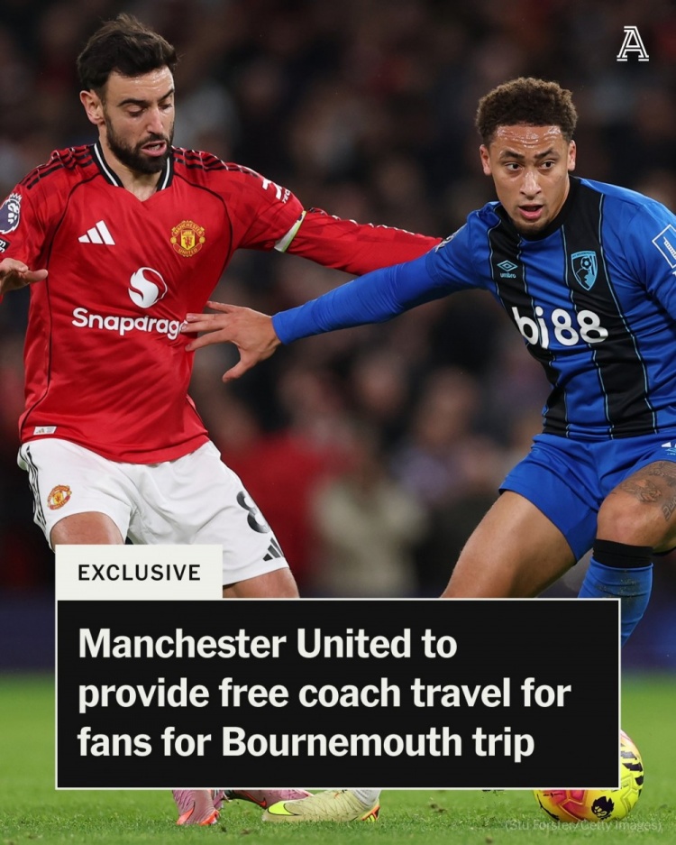 南下交通昂贵,曼联将为远征伯恩茅斯客场的球迷提供免费往返大巴