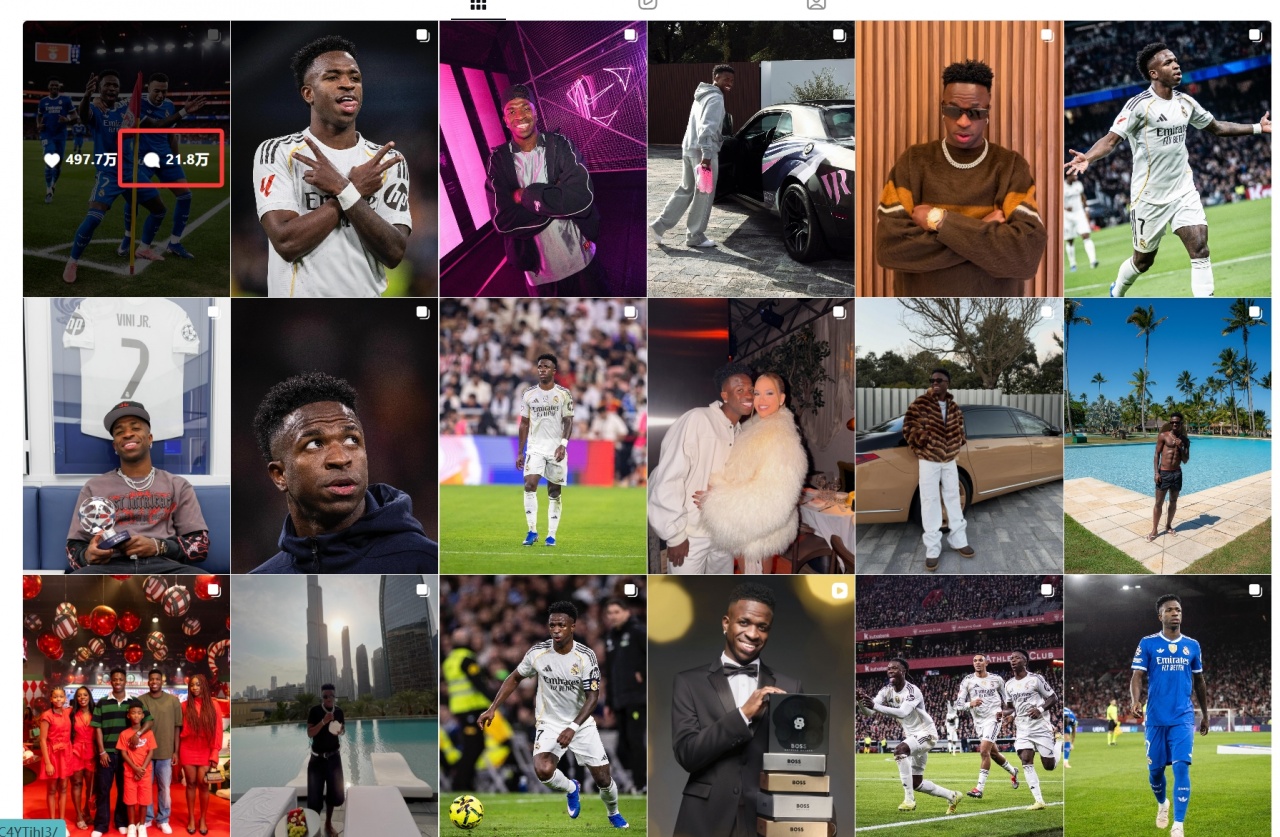 02月19日讯 在皇马1-0击败本菲卡的比赛中,维尼修斯遭到普雷斯蒂安尼的种族歧视,在维尼修斯Ins晒照中,有关本场比赛的社媒评论高达约22万条,创造了近期他社媒评论数的新高。