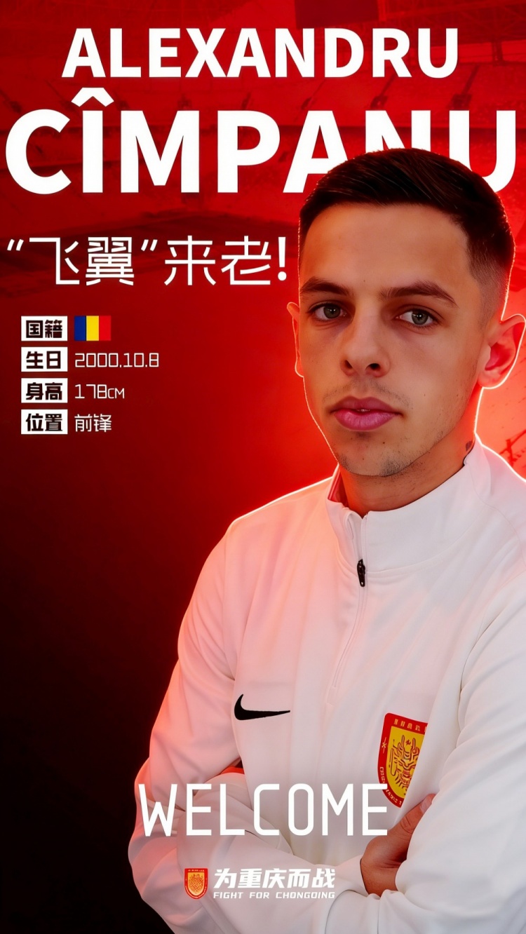 经与罗马尼亚甲级联赛博托沙尼足球俱乐部、球员本人友好协商并达成一致,即日起,罗马尼亚籍球员亚历山德鲁·肯帕努(Alexandru Cîmpanu)以租借形式正式加盟重庆铜梁龙足球俱乐部。待完成相关注册手续后,肯帕努将身披重庆铜梁龙战袍,出战新赛季中超联赛、足协杯等各项正式赛事。