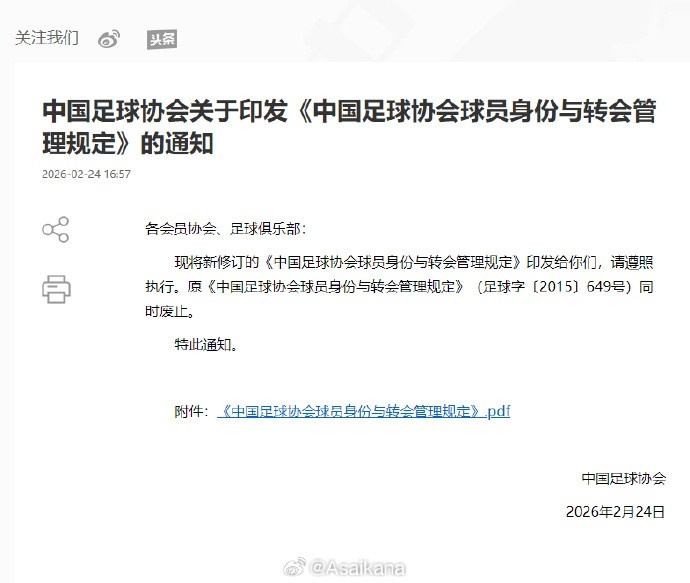 经过公开征求意见后,新版《中国足球协会球员身份与转会管理规定》终于正式发布,同时意味着十年历史的旧版规定正式作古。新版规定已将绝大多数国际足联相关规定、近年来的实操和修订内容融入其中,据悉未来也将和国际足联RSTP一样,保持时更时新的修订节奏。