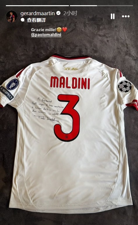 对于后辈,马尔蒂尼在签名球衣上进行了鼓励,他写道:致赫拉德,祝你生日快乐,也祝你职业生涯一切顺利。谨致问候,保罗·马尔蒂尼。马丁在社媒上则写道:万分感谢!