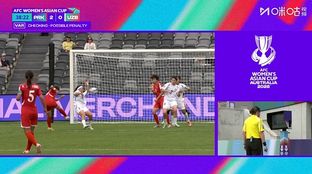 第39分钟,朝鲜再次获得点球,乌兹别克斯坦球员禁区内手球,明有成主罚点球再次破门,明有成上演帽子戏法。朝鲜女足3-0领先
