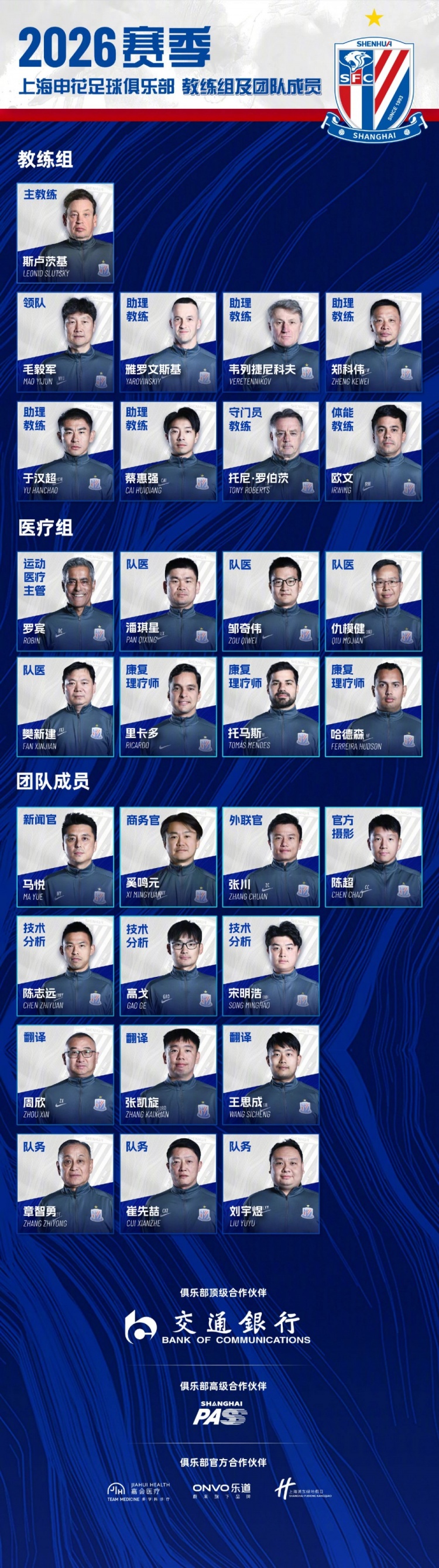 2026赛季上海申花一线队名单