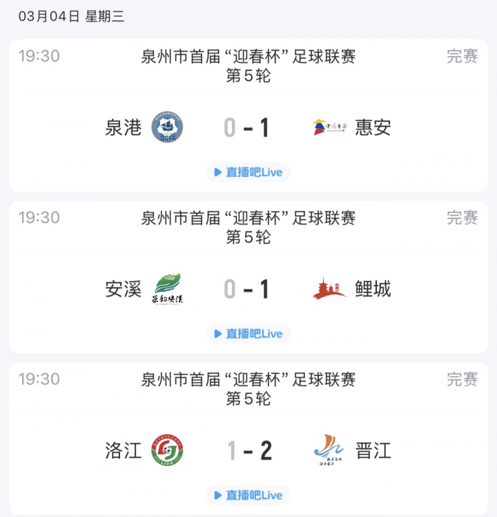 泉州迎春杯今日综述:惠安、鲤城1球小胜,安溪、晋江晋级四强