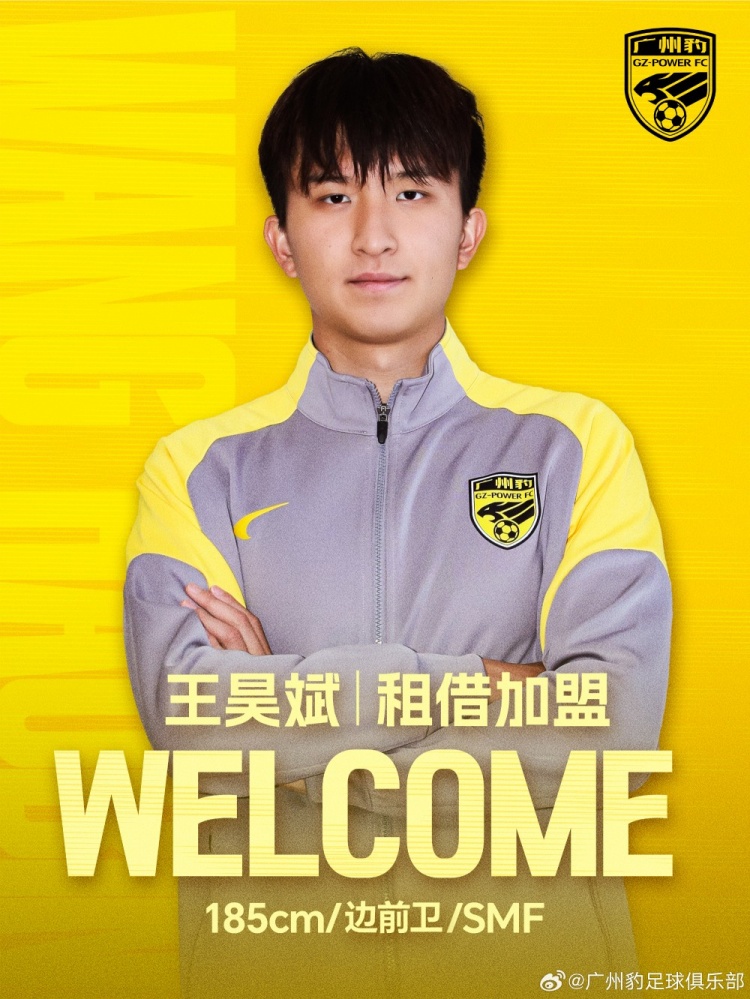 3月7日讯 广东广州豹俱乐部官方宣布,球员王昊斌租借加盟。王昊斌出生于2006年,是一名锋线球员。他在上赛季分别为山东泰山B队和山东泰山一线队出场,并上演中超首秀。