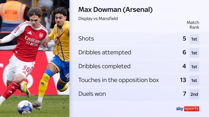 03月07日讯 足总杯第5轮阿森纳客场2-1淘汰英甲曼斯菲尔德,16岁小将道曼代表阿森纳首发,表现亮眼。