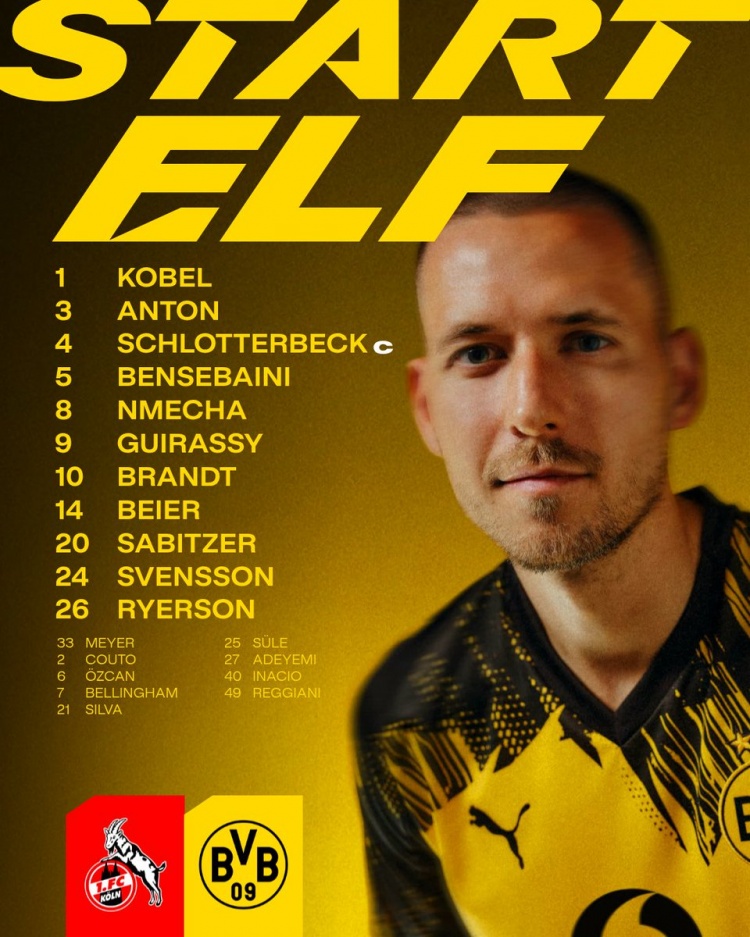 3月8日讯 德甲第25轮比赛,多特前往客场挑战科隆。目前,多特已经公布本场比赛首发阵容,施洛特贝克领衔,布兰特、萨比策出战,阿德耶米替补。