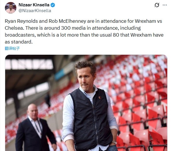 据记者Nizaar Kinsella报道,雷克瑟姆老板雷诺兹和麦克艾伦尼出现在比赛现场。本场比赛共有约300名媒体人员到场,其中包括各大转播机构。这一数字远高于雷克瑟姆平时标准的80人规模。