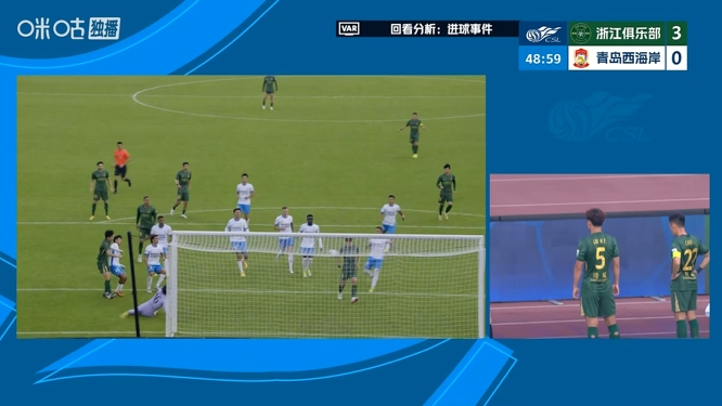 比赛第47分钟,刘浩帆门前破门,但被VAR介入,主裁最终判罚手球在先,进球无效。随后第52分钟,刘浩帆回防时放倒对手送点,好在赵博最终将球扑出。
