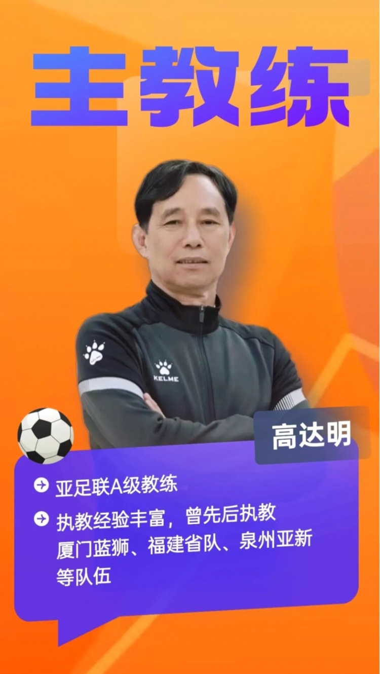 1962年1月出生于鼓浪屿的高达明,有着丰富的足球执教经验。1996年,厦门成立职业足球俱乐部,高达明就担任助理教练。除1999年至2001年担任厦足二线队主帅外,高达明出任过沈福儒、张宏根、谷明昌、蔺新江、高洪波等多位厦足主帅的助手,并于2007年出任厦足主帅征战中超联赛。值得一提的是,高达明2001年带领厦足二线队获得了全国U19锦标赛的冠军。厦足解散后,高达明先后担任过福建省队和中乙泉州亚新队主教练,并出任过泉州亚新总教练和总经理。
