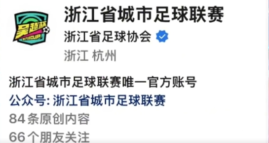 浙江省足协助理沙维克表示,3月25日正式召开新闻发布会,推出“吴越杯”作为赛事名称,而就在同一天,一个公众号抢先注册了“吴越杯”这个名字。官方号只能叫“浙江省城市足球联赛”。