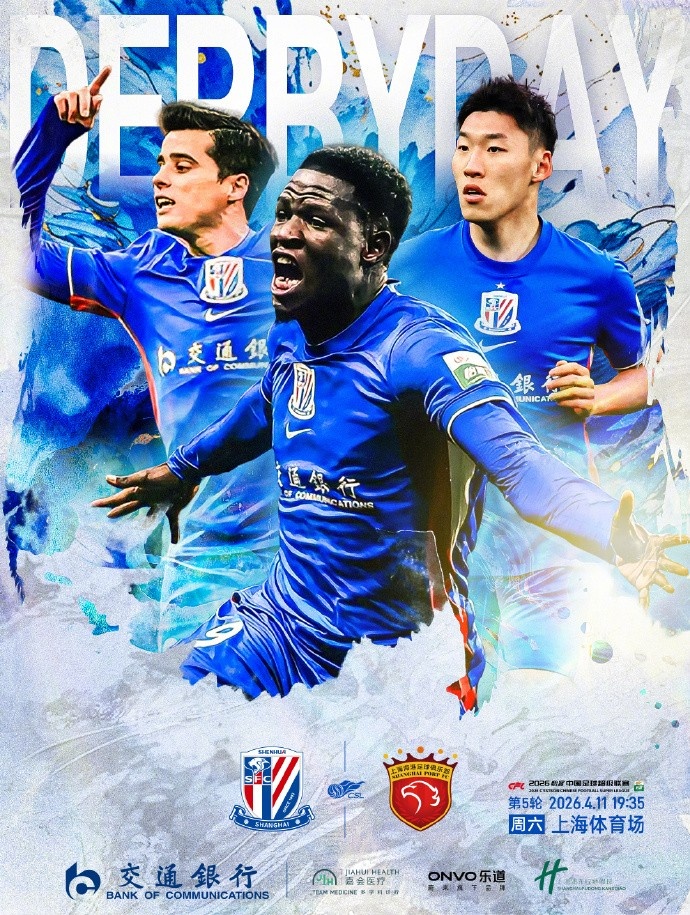 中超联赛第5轮 上海申花vs上海海港 4月11日 周六 19:35