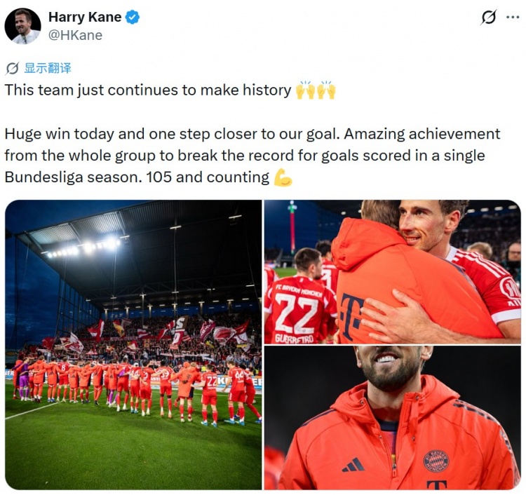 替补未登场!凯恩社媒庆祝大胜:这支球队仍在继续创造历史