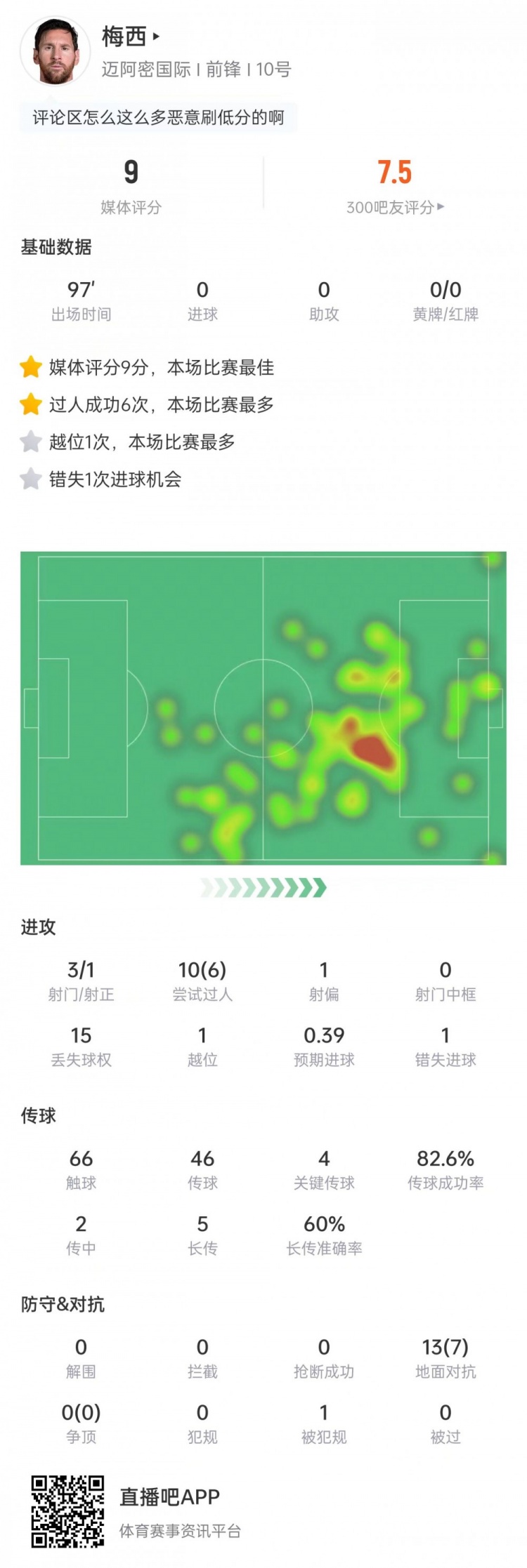 梅西本场比赛数据: