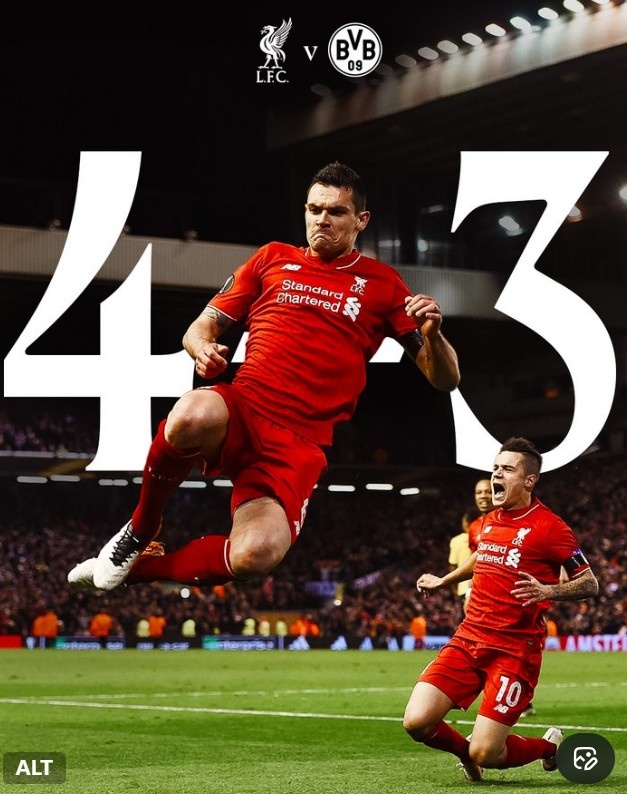 10年前的今天利物浦欧联杯4-3逆转淘汰多特,球队官推晒海报重温