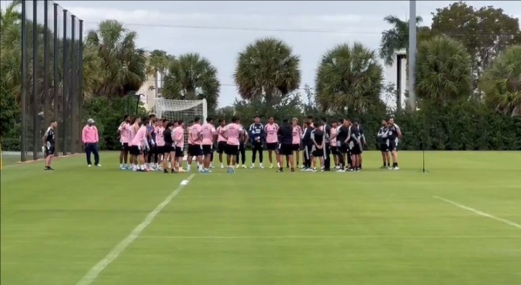 该记者写道:“迈阿密国际新帅奥约斯于今日上午在训练前对球员发表讲话,大卫·贝克汉姆现场见证。”