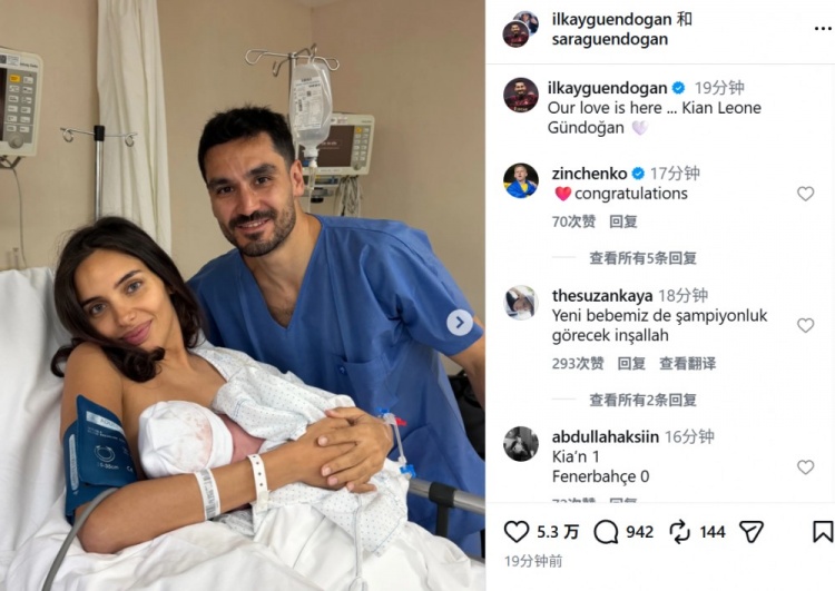 4月22日讯 前曼城中场大将京多安在近日迎来了第三个孩子的降生,他也在社媒分享了这一喜悦。