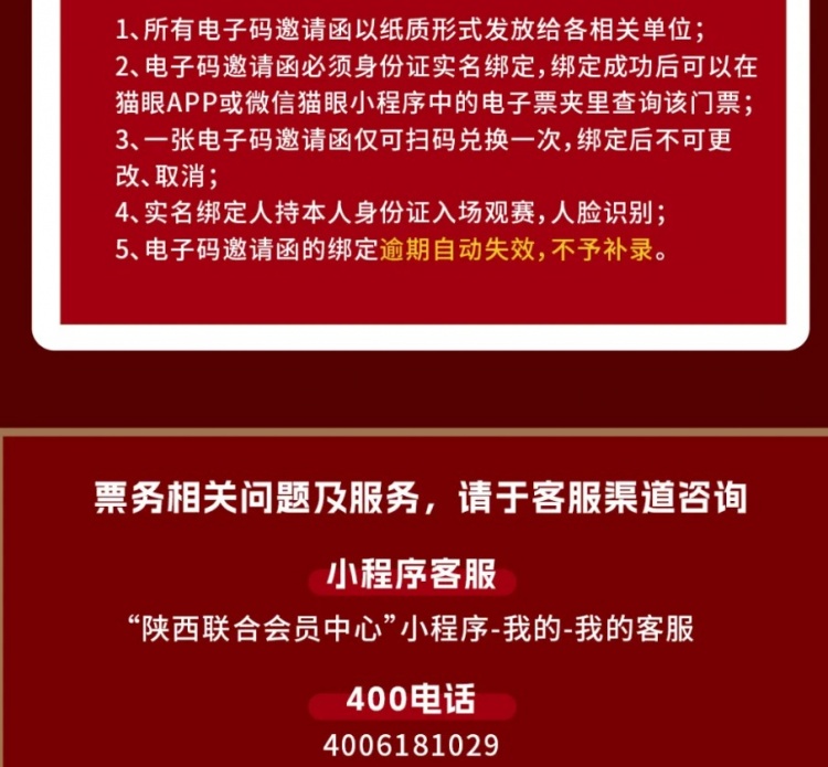 *持纸质邀请函观众需按函内指引与要求,如实填写观赛人本人正确信息,否则无法入场观赛。且邀请函本身不可作为入场凭证。